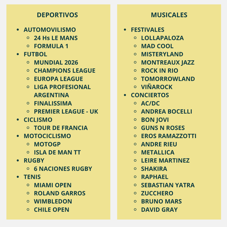 Eventos deportivos y musicales
